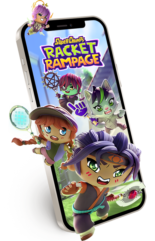 Racket Rampage, the first mobile game in the Super Champs Universe, is a tennis-inspired action role-playing game (RPG) with a wide range of solo and PvP modes and events. A deep suite of metagame features including seasons, tournaments, and quests rewards players with superhero gear and upgrades that increase the power and appearance of their Super Champ characters and NFTs.